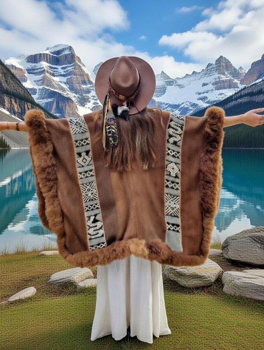 Each cape is carefully woven in Peru using 100% baby alpaca fiber, one of the world’s finest natural materials, known for its exceptional softness, warmth, and durability. The woven pattern represents traditional Andean symbols, inspired by nature, balance, and connection to Pachamama (Mother Earth).